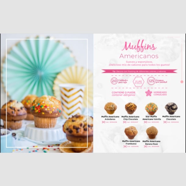 Caja de muffins con chips de chocolate. 30 unidades. 60 gramos cada unidad.
