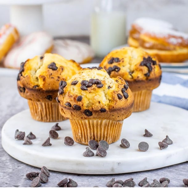 Caja de muffins con chips de chocolate. 30 unidades. 60 gramos cada unidad.